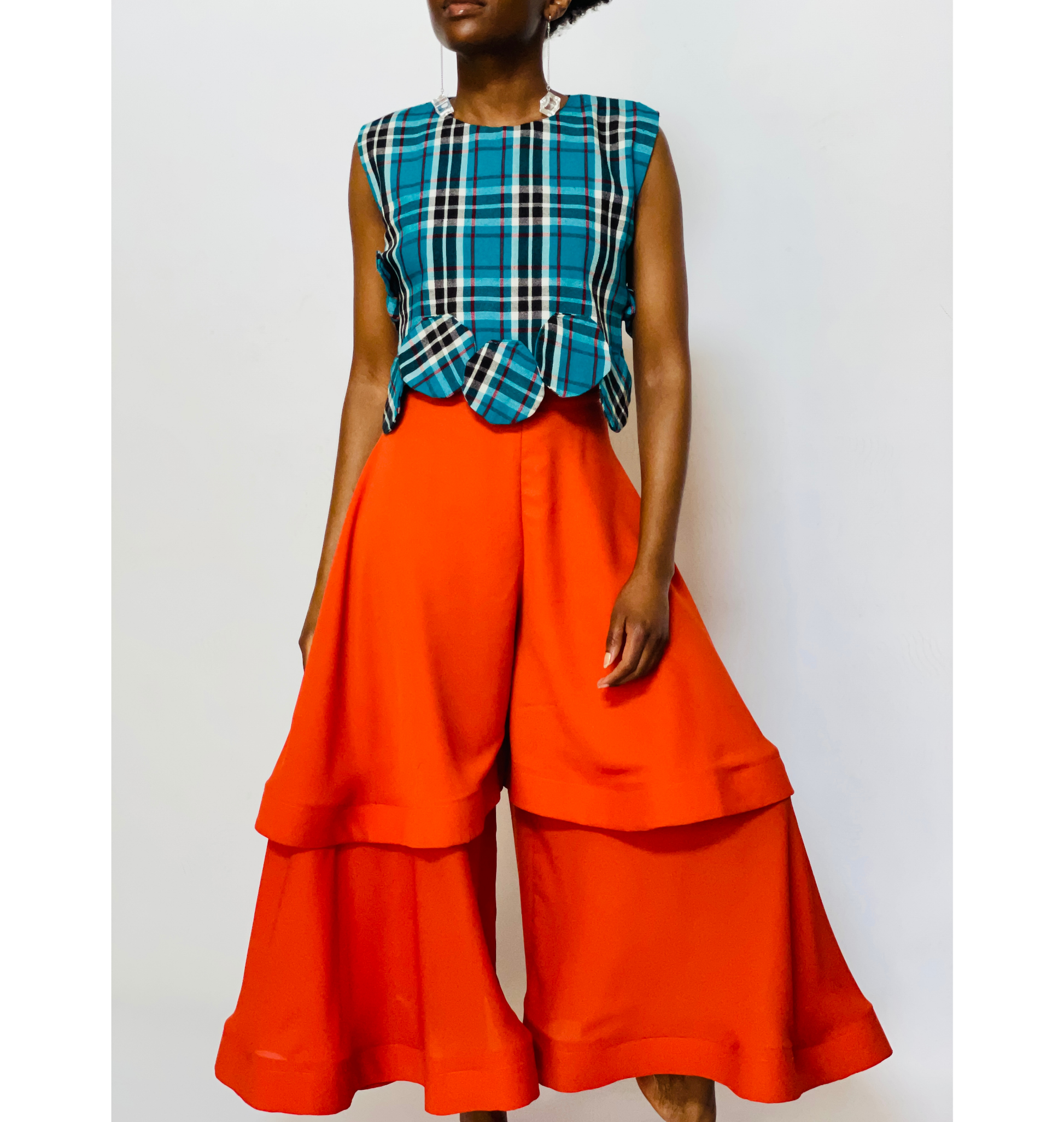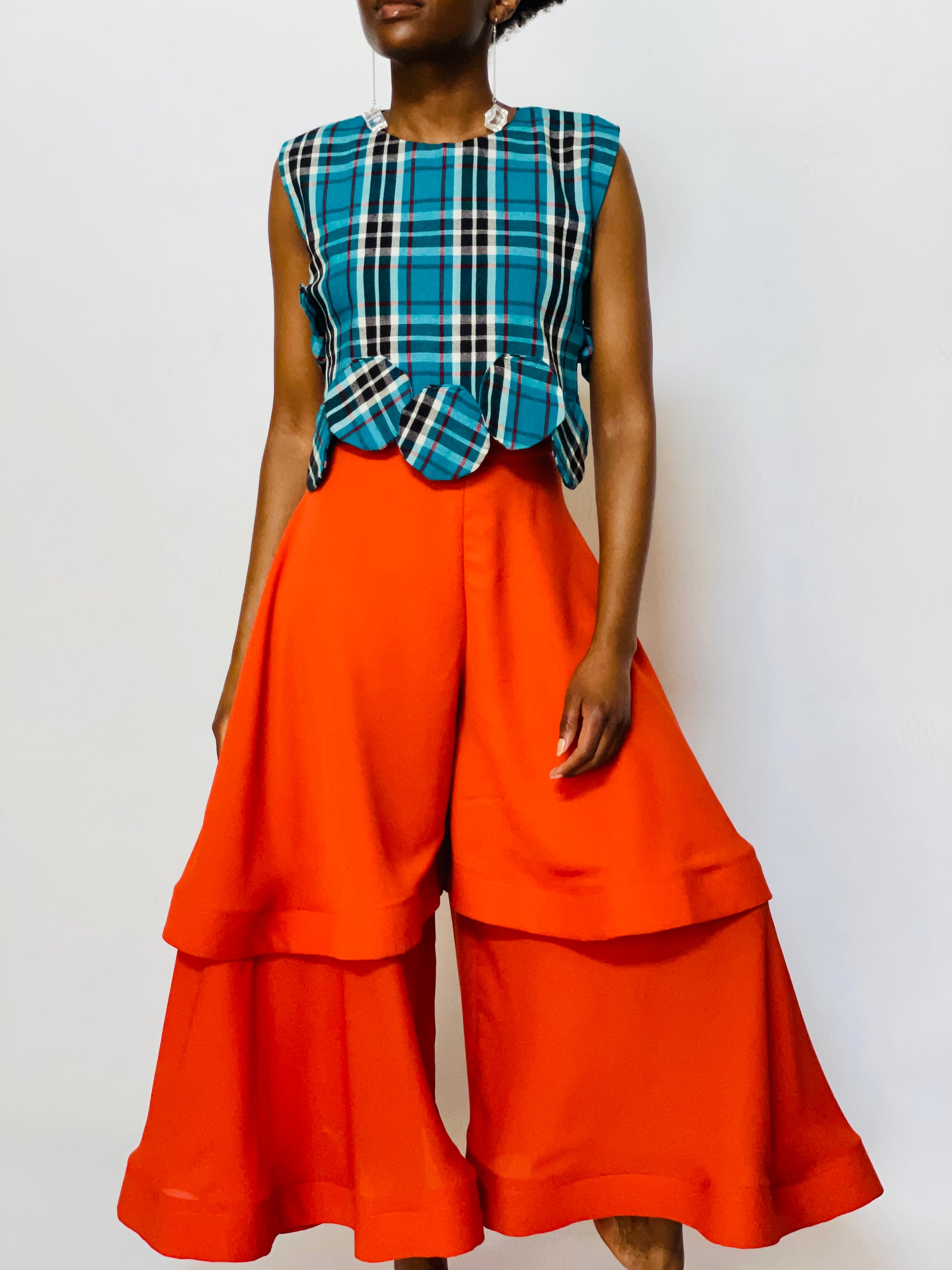 These wide-leg pants feature a striking burnt orange that commands attention and adds an instant pop to any outfit. Crafted with layered fabric details, the Chozi pants offer a flowy, dramatic silhouette that moves gracefully with every step.