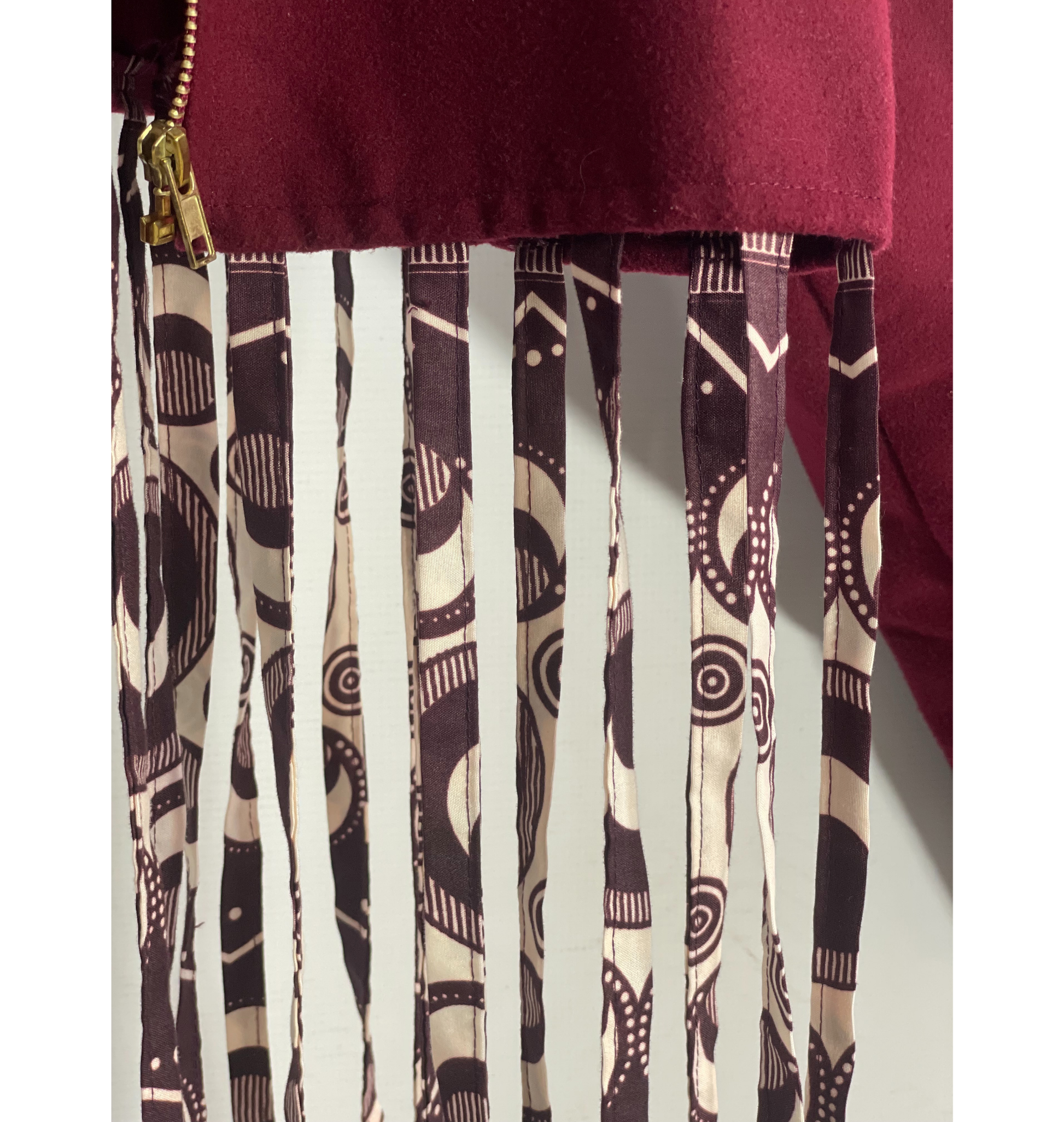 The K A S A M A bomber jacket combines a sophisticated textured fabric with a modern cropped silhouette, offering a distinctive layered look. Enhanced by elegant fringe accents, this jacket brings a dynamic edge to your wardrobe while maintaining a refined, expert-crafted appeal. Ideal for adding statement style to both casual and elevated outfits.